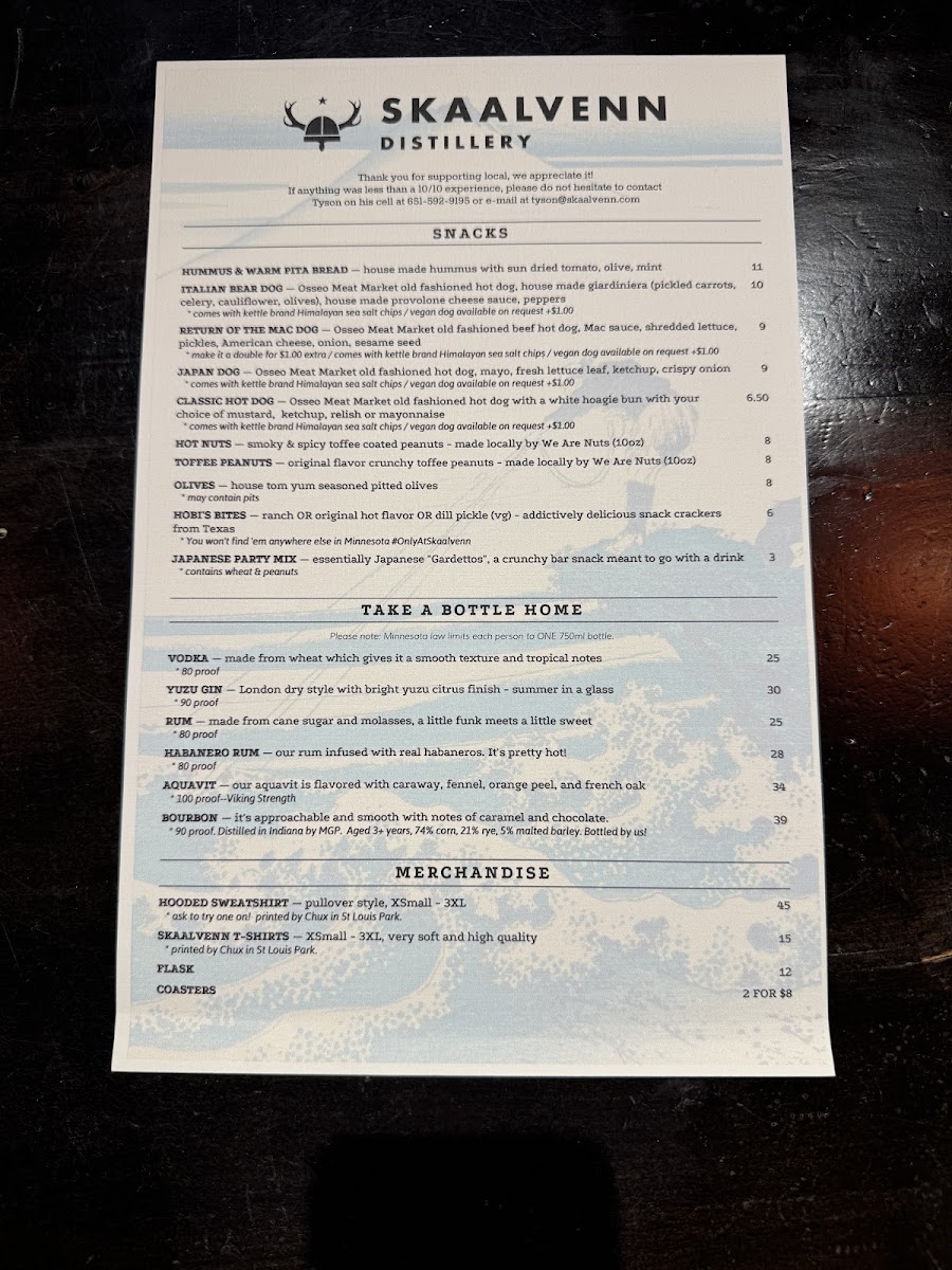 Welcome to Skaalvenn Distillery & Cocktail Lounge, a hidden gem nestled in Brooklyn Park, MN. This unique cocktail bar boasts a customizable experience that draws inspiration from speakeasy culture. As you step inside, expect a cozy atmosphere thoughtfully curated with chic lighting and tasteful décor, creating the perfect backdrop for a night out.